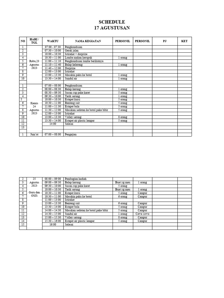 3 Agustus 09:00 – 09:30 Balap karung Buat yg mau 1 orang