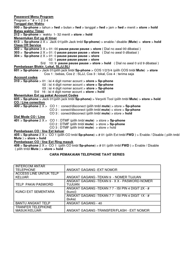 CARA PEMAKAIAN TELEPHONE TA/HT SERIES
