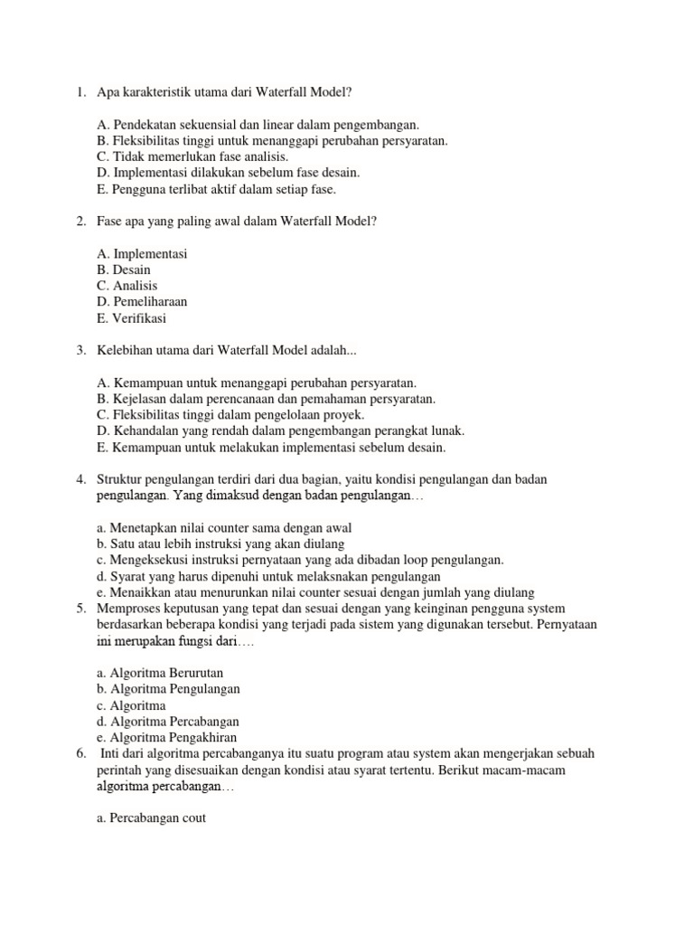 2. Fase apa yang paling awal dalam Waterfall Model?