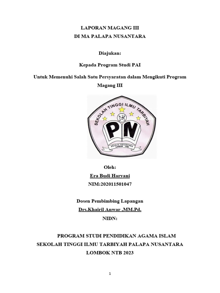 Pendidikan Agama Islam,STIT Palapa Nusantaratelah disetujui oleh: