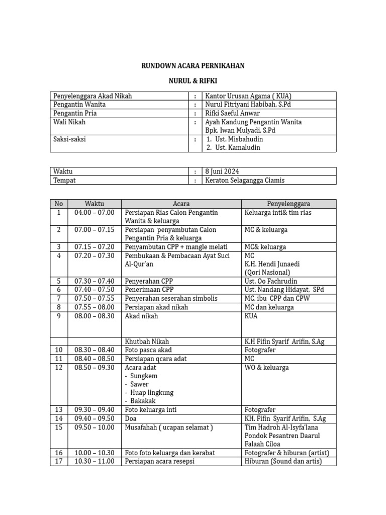 RUNDOWN ACARA PERNIKAHAN