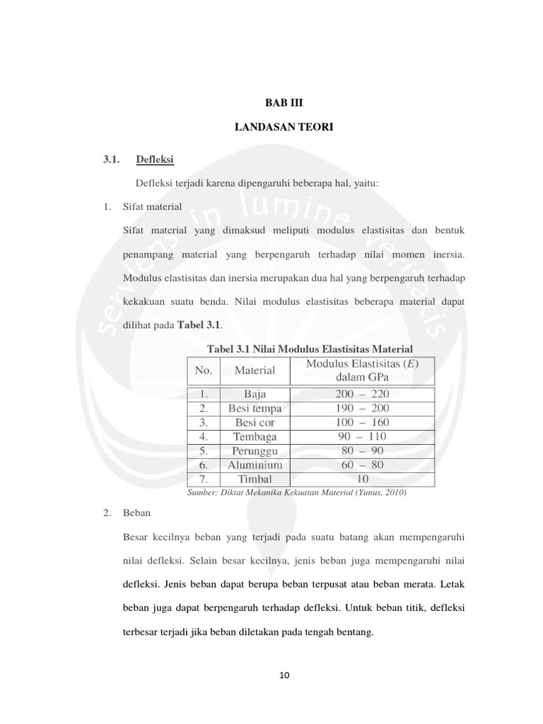 Sifat material yang dimaksud meliputi modulus elastisitas dan bentuk