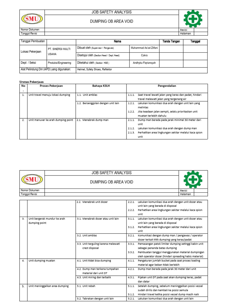 Dept / Seksi Produksi/Engineering Diketahui oleh ( Section HSE ) Andhyka Fiqriansyah