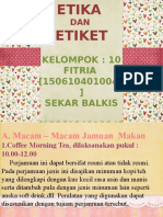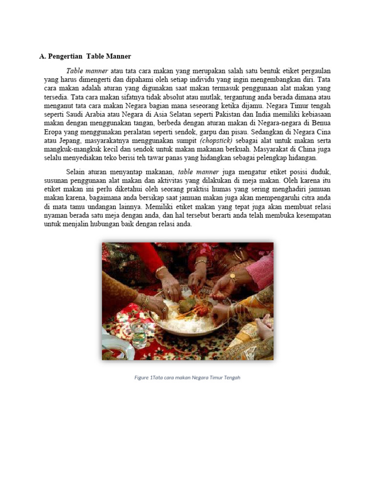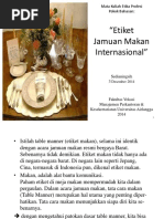 Table manner atau tata cara makan yang merupakan salah satu bentuk etiket pergaulan