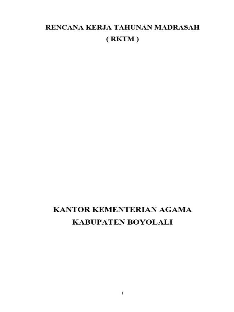 RKTM adalah Rencana Kerja Tahunan Madrasah berisi tentang program kegiatan dan biaya yang