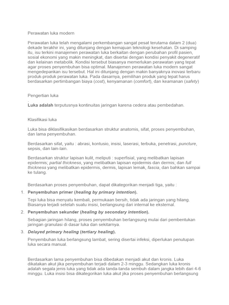 agar proses penyembuhan bisa optimal. Manajemen perawatan luka modern sangat