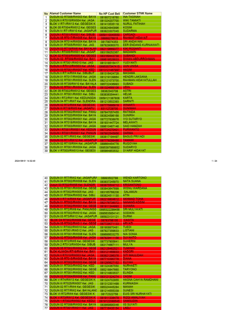 Daftar Kontak Pelanggan