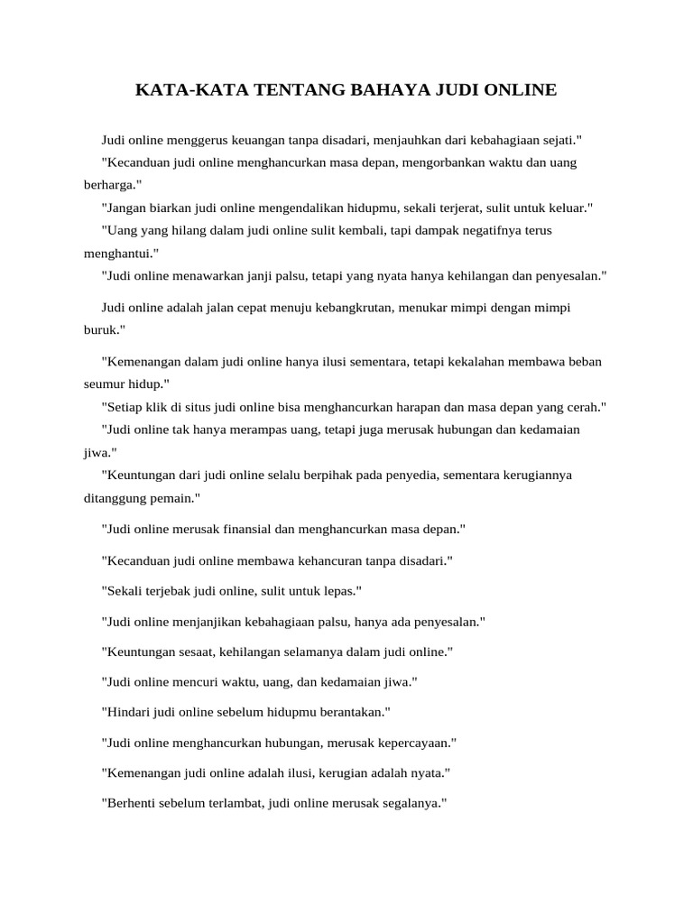 KATA-KATA TENTANG BAHAYA JUDI ONLINE