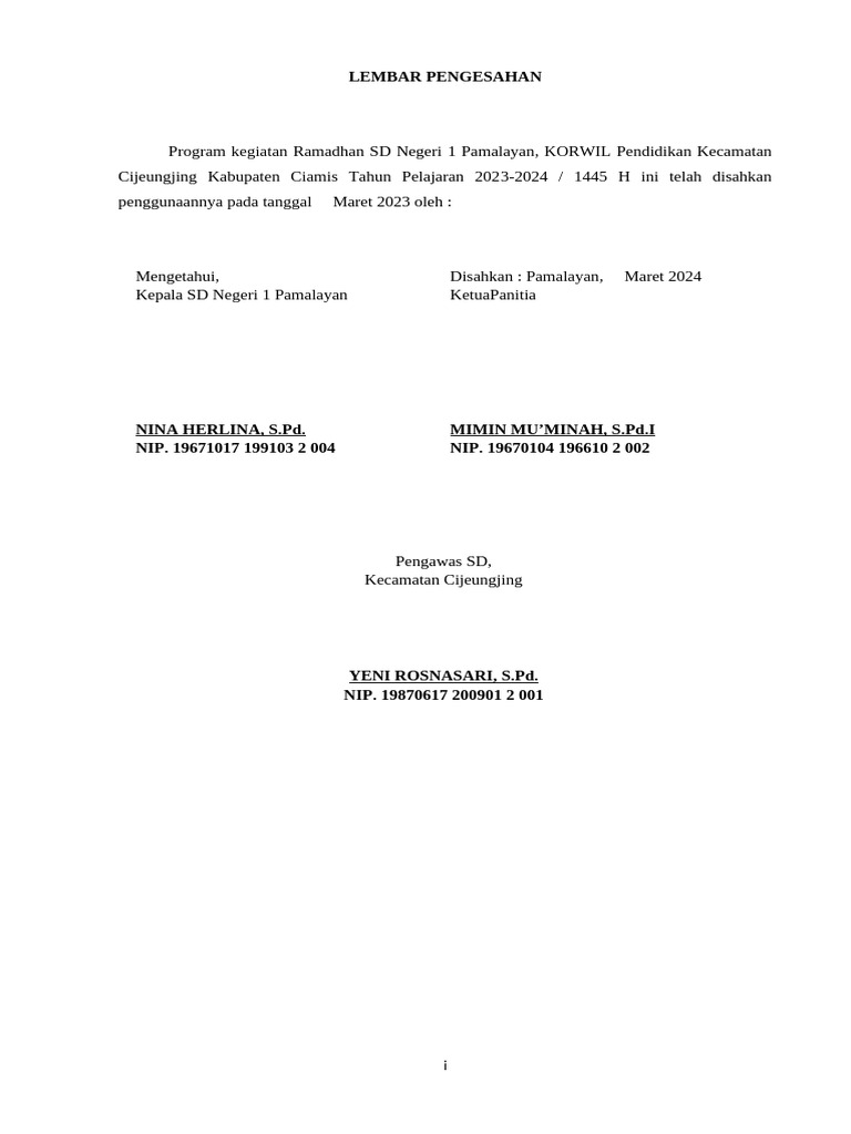Mengetahui, Disahkan : Pamalayan, Maret 2024