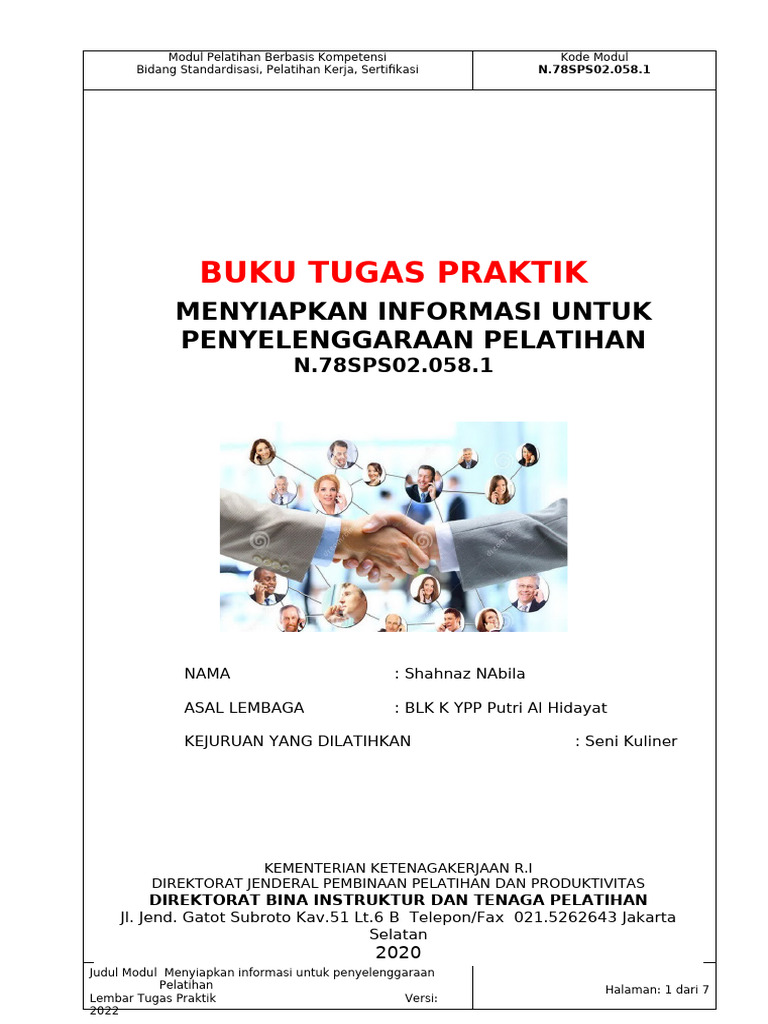LPK/BLK anda akan menyelenggarakan pelatihan, untuk itu
