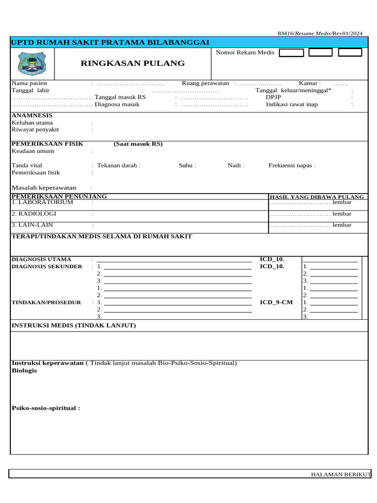 ……………………………… Tanggal masuk RS : ………………………… DPJP :