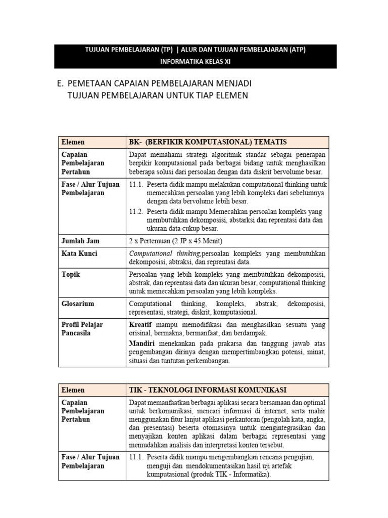 Fase / Alur Tujuan 11.1. Peserta didik mampu melakukan computational thinking untuk