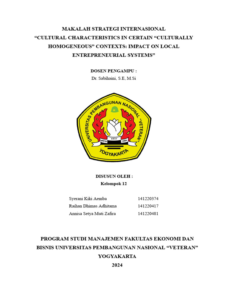 CONTEXTS: IMPACT ON LOCAL ENTREPRENEURIAL SYSTEMS” ini dengan baik