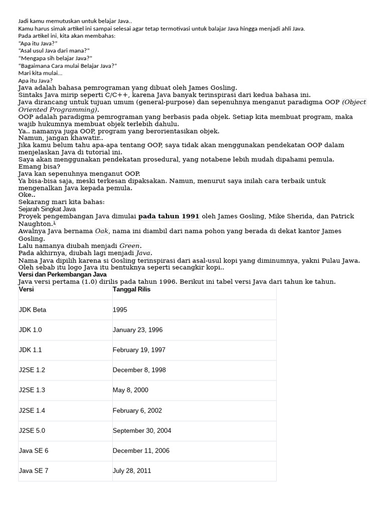 menjelaskan Java di tutorial ini.