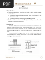 PENDAHULUAN Pengujian triaksial merupakan pengujian kekuatan geser tanah lempung dengan keuntungan bahwa kondisi pengaliran dapat dikontrol, tekanan air pori dapat diukur, tanah dimungkinkan dikonsolidasi dan bila diperlukan sampel tanah tersebut dapat dijenuhkan (back pressure). Pada tahap konsolidasi, konsolidasi terjadi di bawah kenaikkan tegangan total yang sama yang tegak lurus terhadap permukaan atas dan permukaan keliling sampel tanah. Pada kondisi ini, regangan lateral pada sampel tidak nol. Pengukuran tekanan air pori, tekanan air pori dari sampel tanah pada uji triaksial harus dihitung pada kondisi tanpa pengaliran (undrained) atau pada kondisi teralirkan (drained test) maka tekanan yang terjadi harus dikoreksi. Pengujian CU dan CD 1. Terkonsolidasi tak terdrainase (CU test), sampel tanah dikonsoldiasi dimana air diperbolehkan mengalir keluar dari sampel tanah di bawah tekanan cell. Kemudian digunakan selisih tegangan utama tanpa pengaliran. Pengukuran tekanan air pori dilakukan selama keadaan tanpa pengaliran. Parameter kuat geser yang diperoleh dinyatakan dalam tegangan total yaitu cu dan u