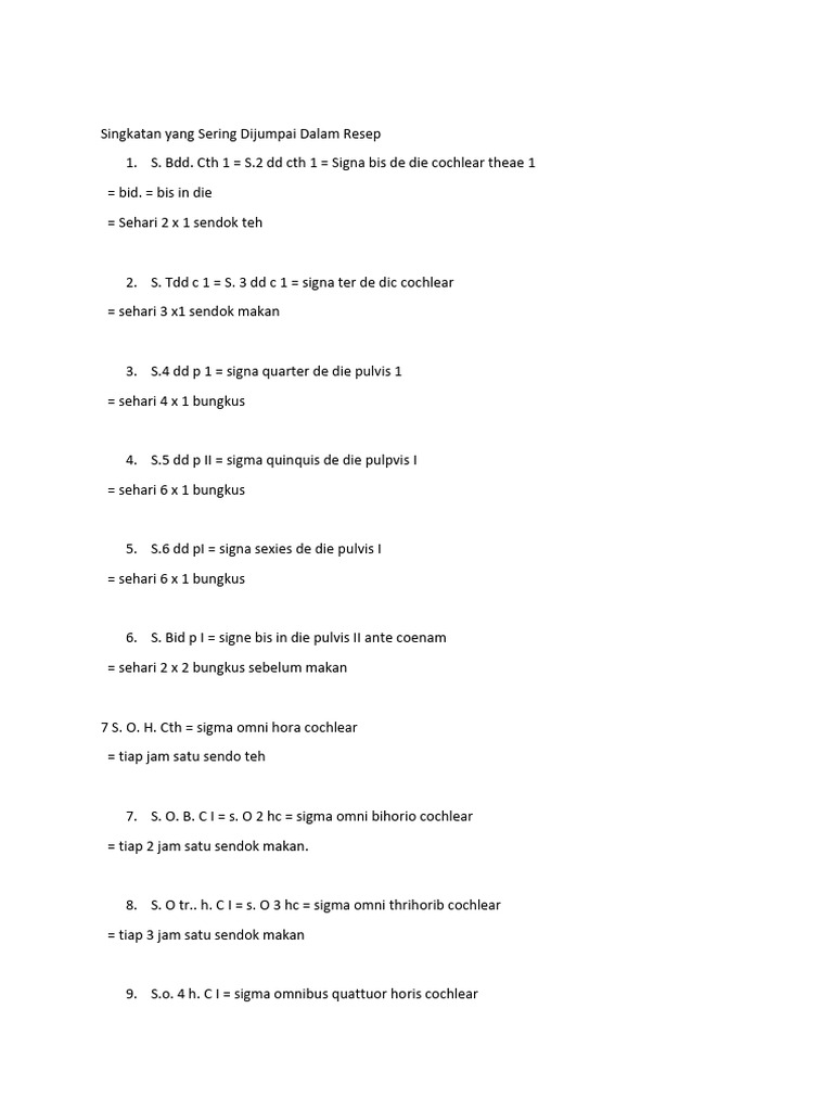 1. S. Bdd. Cth 1 = S.2 dd cth 1 = Signa bis de die cochlear theae 1