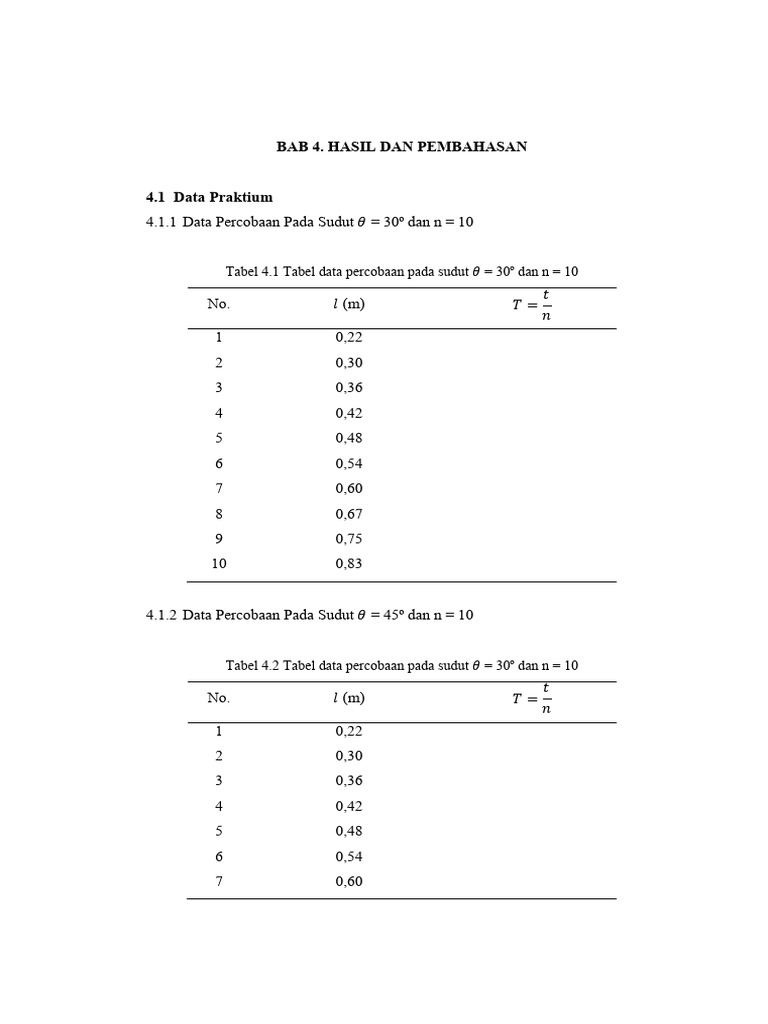 4.1.2 Data Percobaan Pada Sudut = 45º dan n = 10