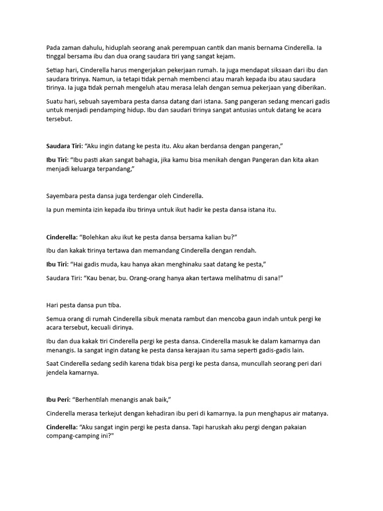 menangis. Ia sangat ingin datang ke pesta dansa kerajaan itu sama seperti gadis-gadis lain.