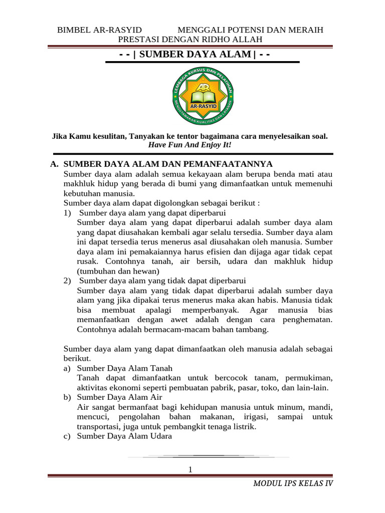 Modul Sumber Daya Alam Kelas IV