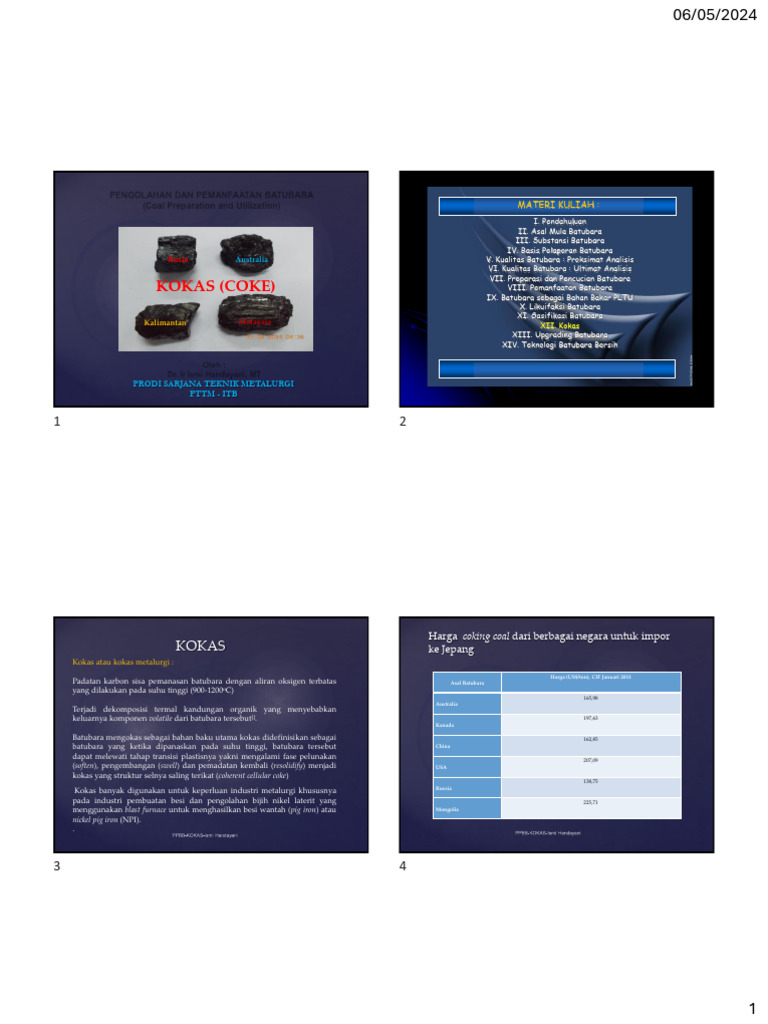 Parameter utama batubara untuk karbonisasi (coking) Standar kualitas dan seleksi batubara mengokas