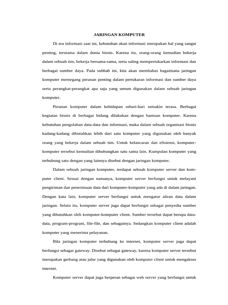 jaringan. Selain itu, komputer server juga dapat berfungsi sebagai penyedia sumber