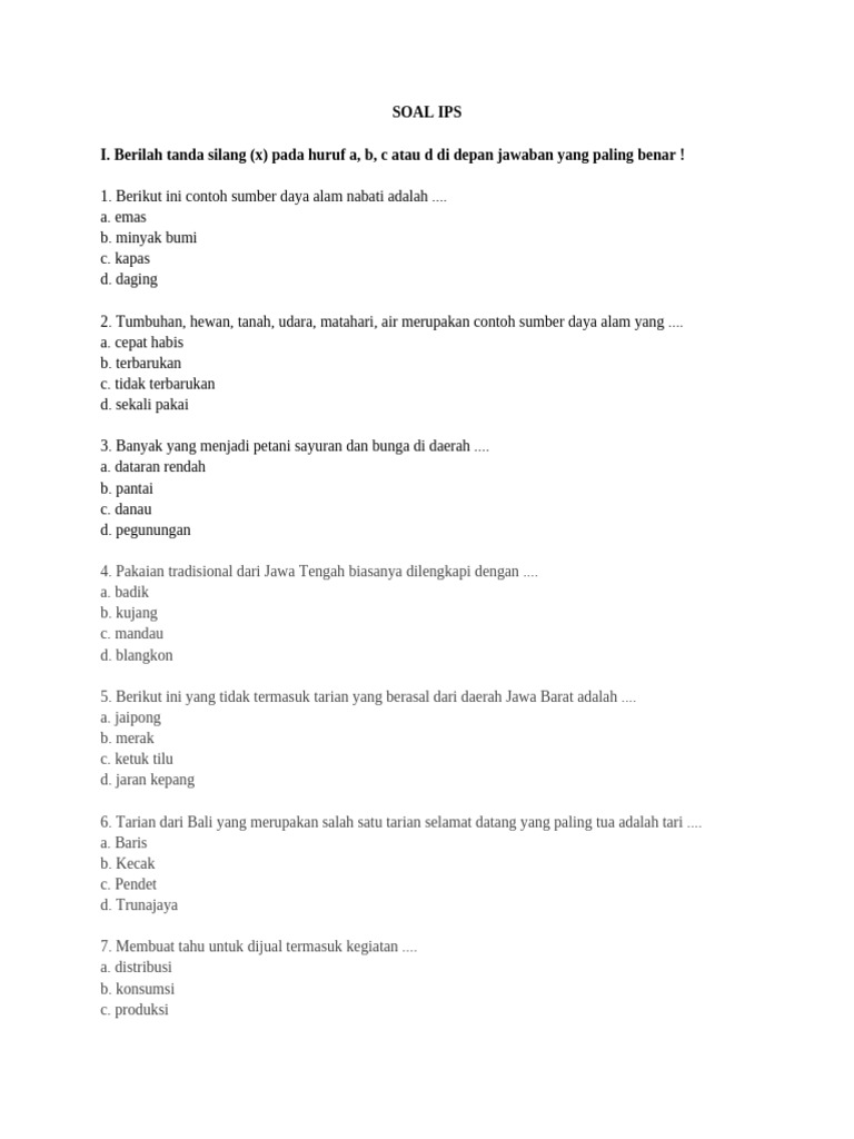I. Berilah tanda silang (x) pada huruf a, b, c atau d di depan jawaban yang paling benar !