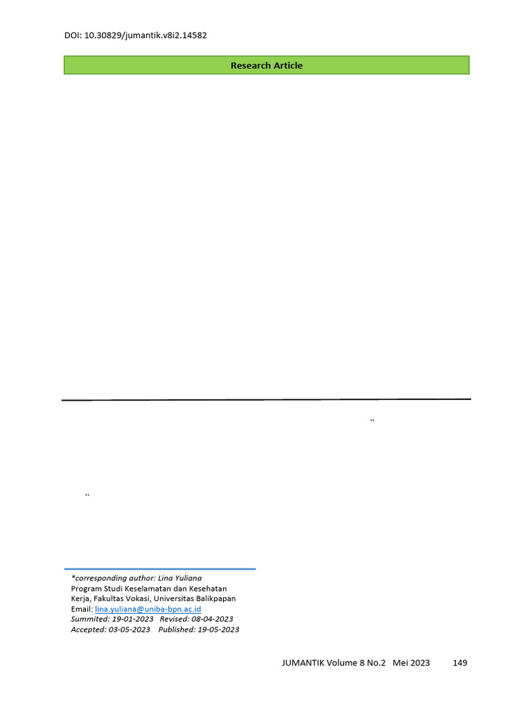 occupational health and safety risk. The purpose of conducting this research is to improve