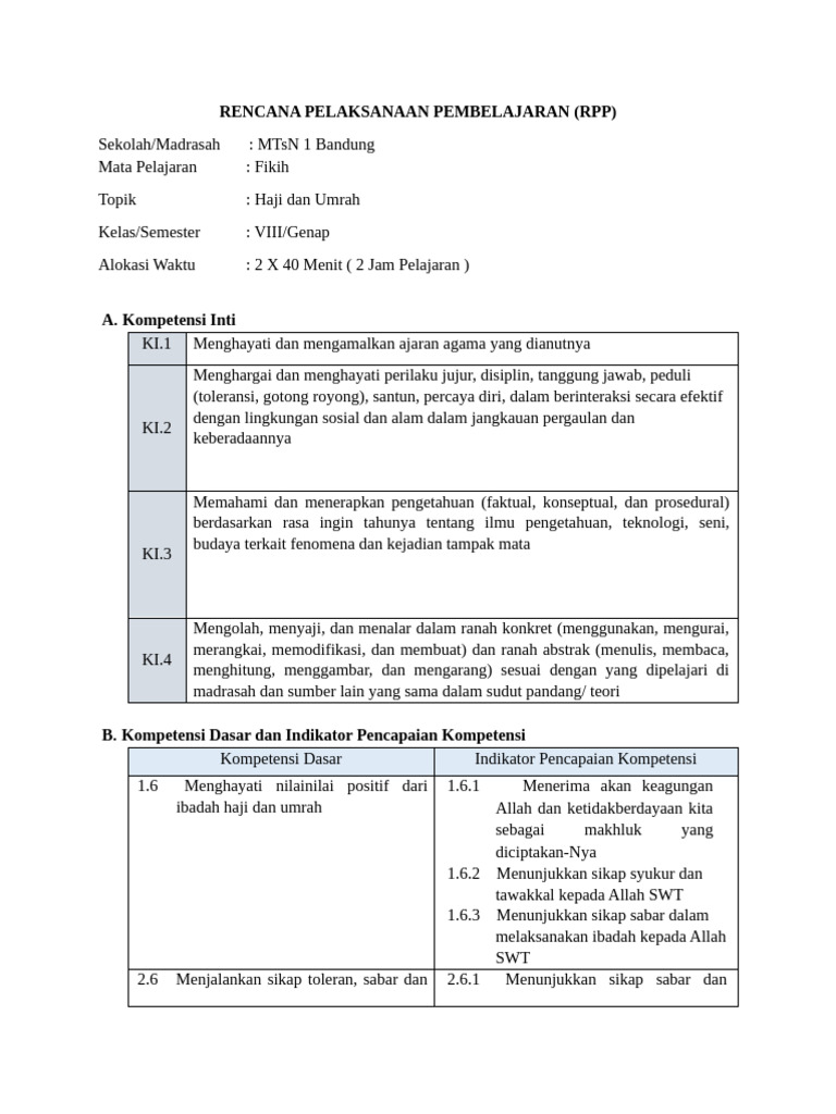 B. Kompetensi Dasar dan Indikator Pencapaian Kompetensi