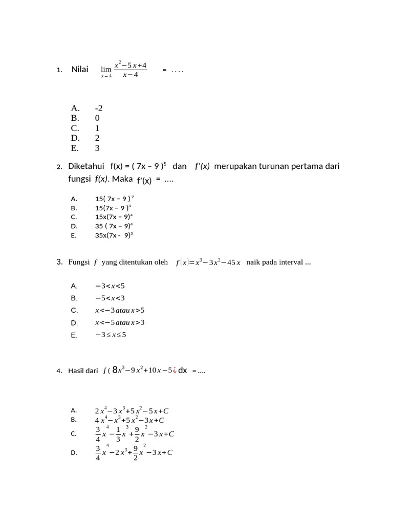 2. Diketahui f(x) = ( 7x – 9 )5 dan f’(x) merupakan turunan pertama dari