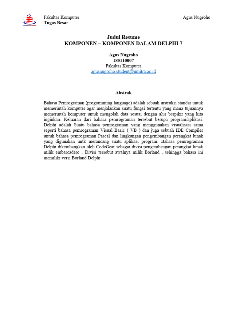 KOMPONEN – KOMPONEN DALAM DELPHI 7