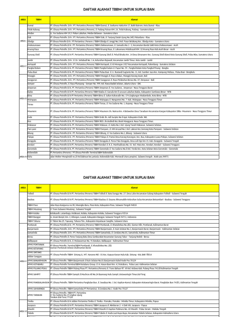 DAFTAR ALAMAT TBBM UNTUK SUPLAI BAN