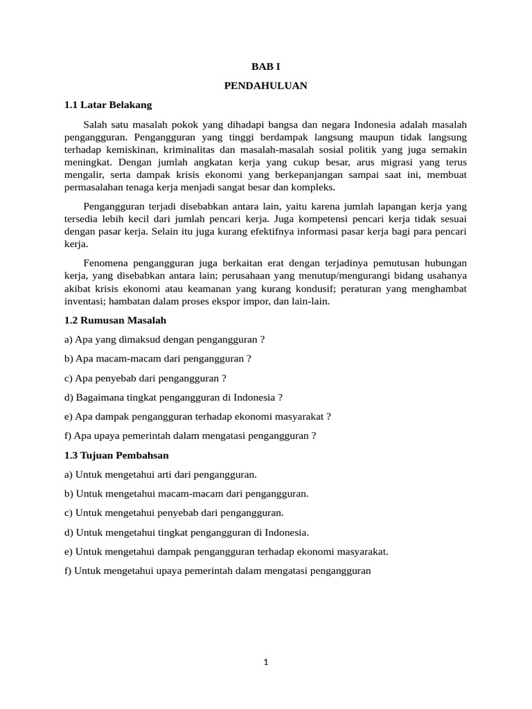 b) Untuk mengetahui macam-macam dari pengangguran.