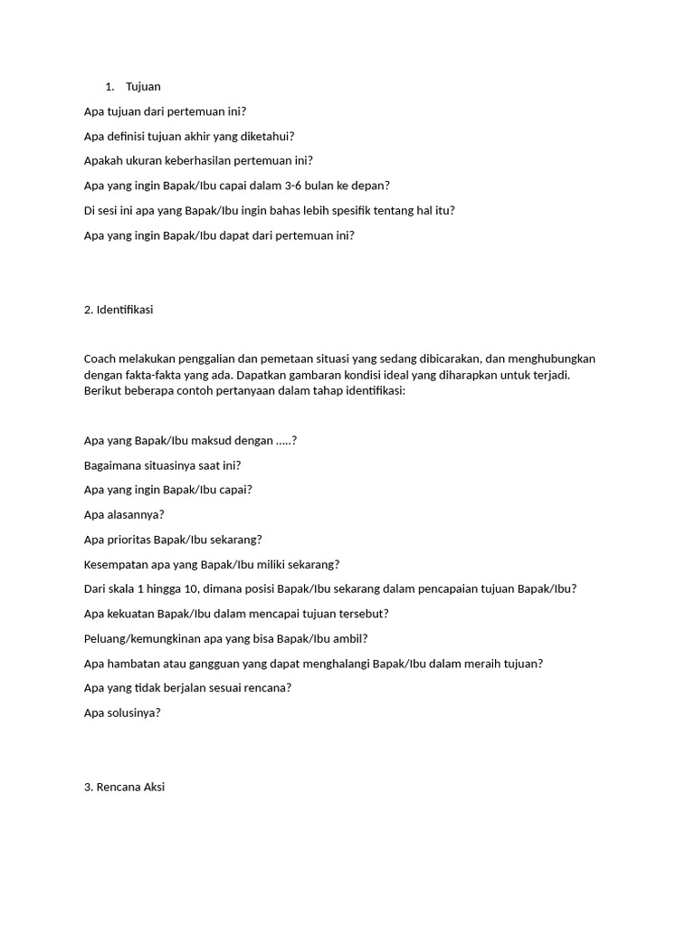 dan seizin coachee. Berikut beberapa contoh pertanyaan di tahap ini: