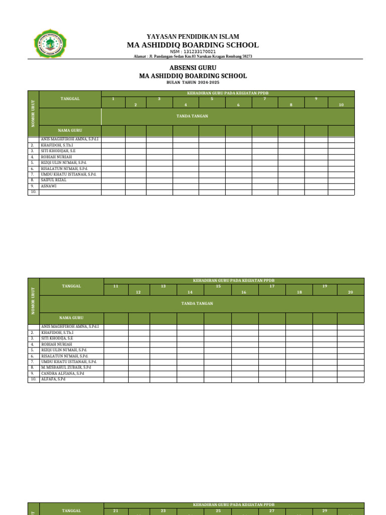 KEHADIRAN GURU PADA KEGIATAN PPDB