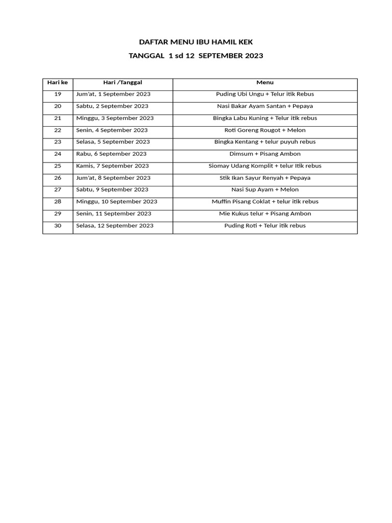 DAFTAR MENU IBU HAMIL KEK