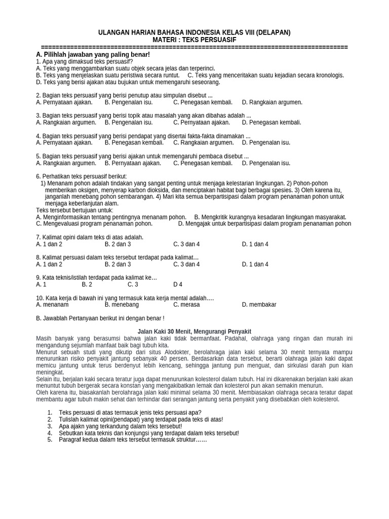 ULANGAN HARIAN BAHASA INDONESIA KELAS VIII (DELAPAN)
