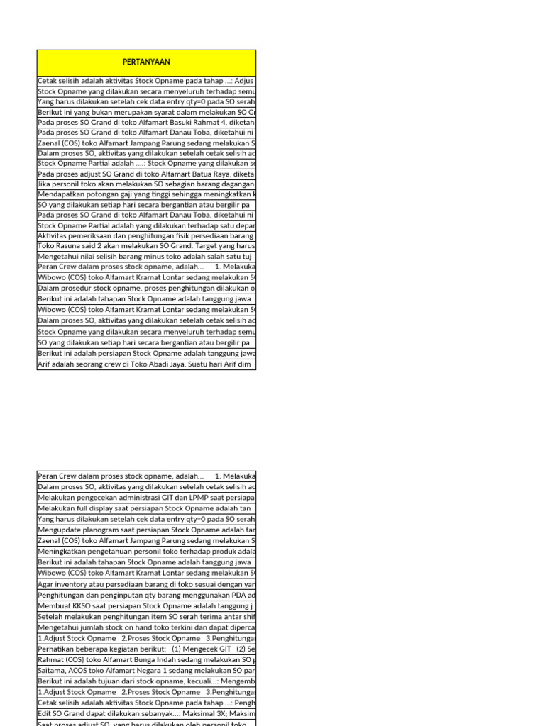 Stock Opname yang dilakukan secara menyeluruh terhadap semua barang dagangan (departemen, rak, PLU) yang ada di toko baik di area sales maupun