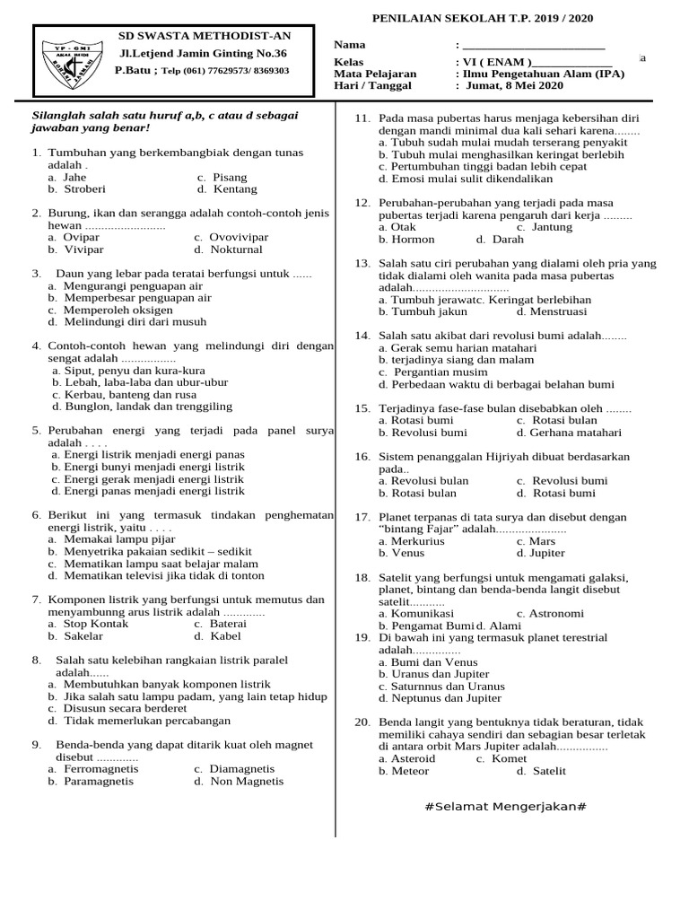 b. Sakelar d. Kabel 19. Di bawah ini yang termasuk planet terestrial