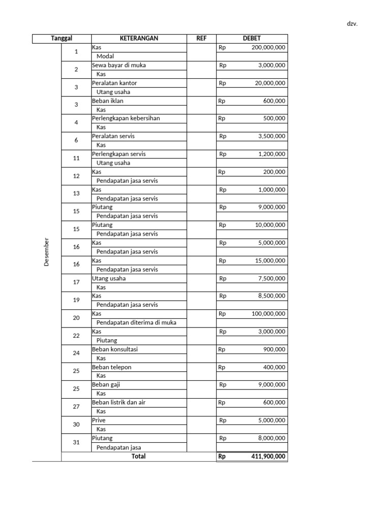 411 Pendapatan jasa Rp 51,700,000 Rp 3,055,556 Rp 54,755,556 Rp 54,755,556