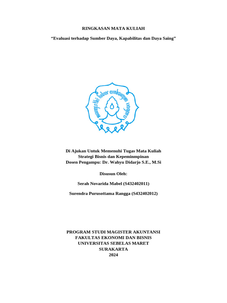 “Evaluasi terhadap Sumber Daya, Kapabilitas dan Daya Saing”
