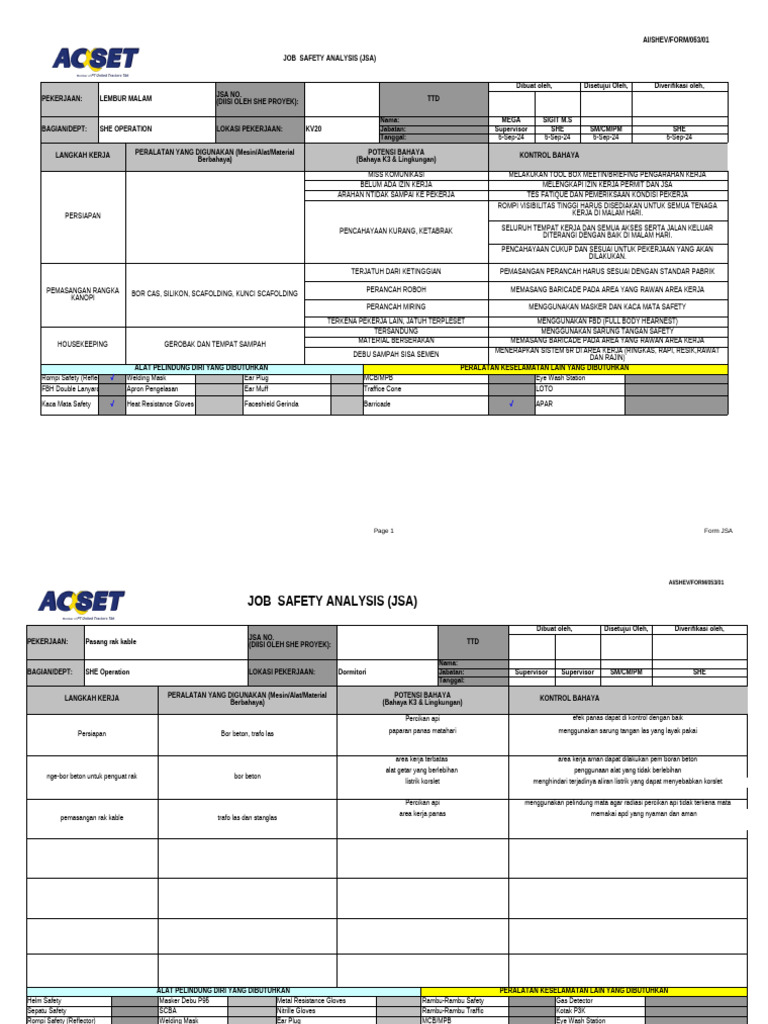 JSA NO. Dibuat oleh, Direview oleh, Diverifikasi oleh,