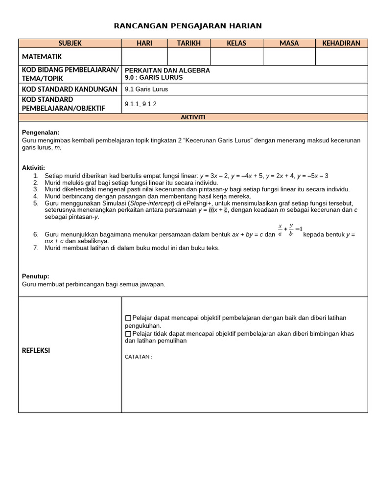 2. Guru memperbanyakkan latihan menukar persamaan dalam bentuk ax + by = c dan kepada bentuk