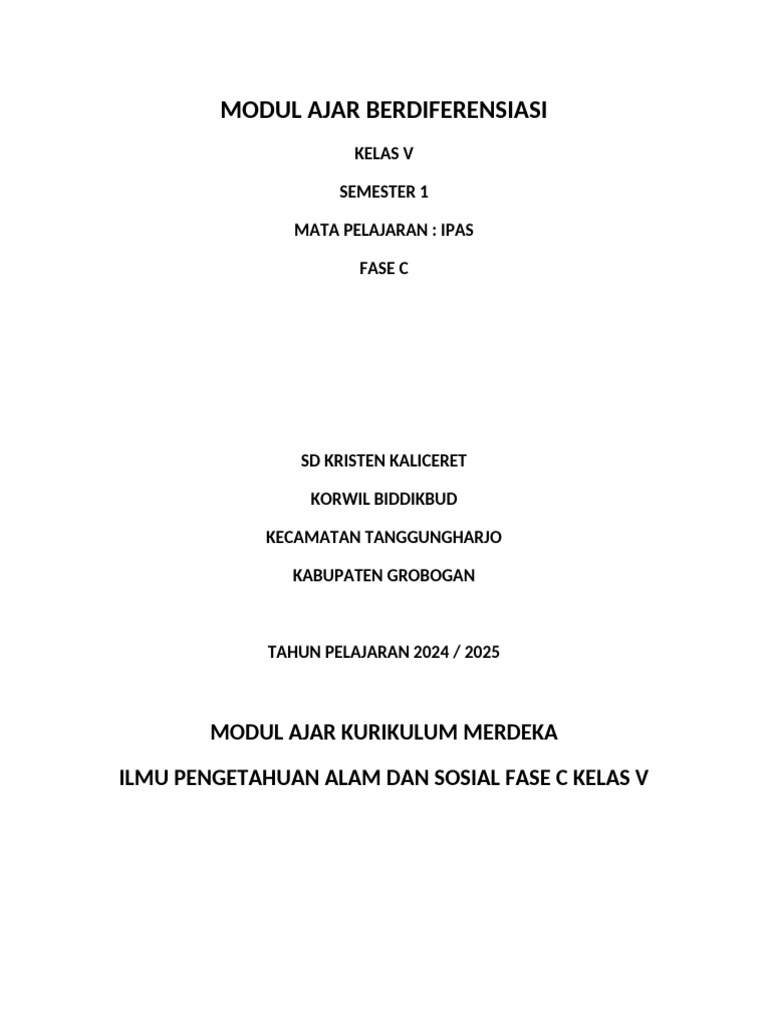 ILMU PENGETAHUAN ALAM DAN SOSIAL FASE C KELAS V
