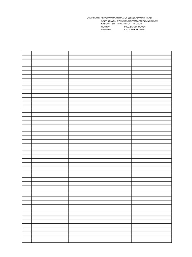 LAMPIRAN : PENGUMUMAN HASIL SELEKSI ADMINISTRASI