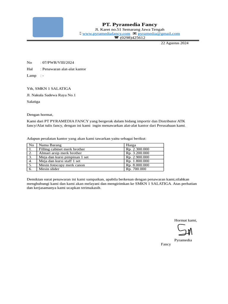 Demikian surat penawaran ini kami sampaikan, apabila berkenan dengan penawaran kami,silahkan