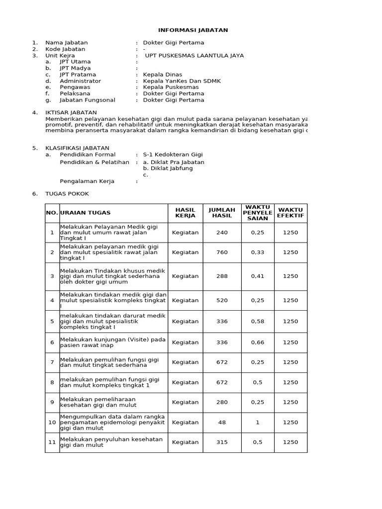g. Jabatan Fungsonal : Dokter Gigi Pertama