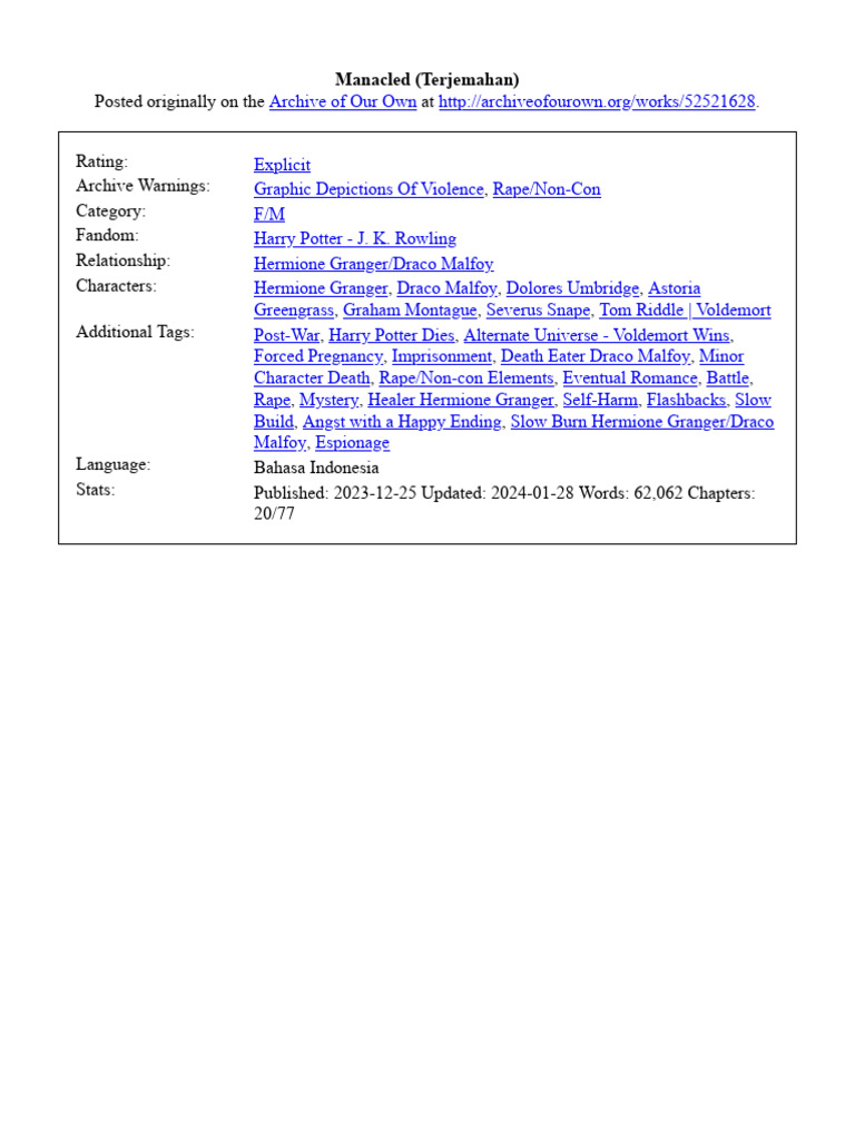 yang pernah dilihat Hermione. Hermione hampir tidak bisa melihat wajahnya saat Malfoy
