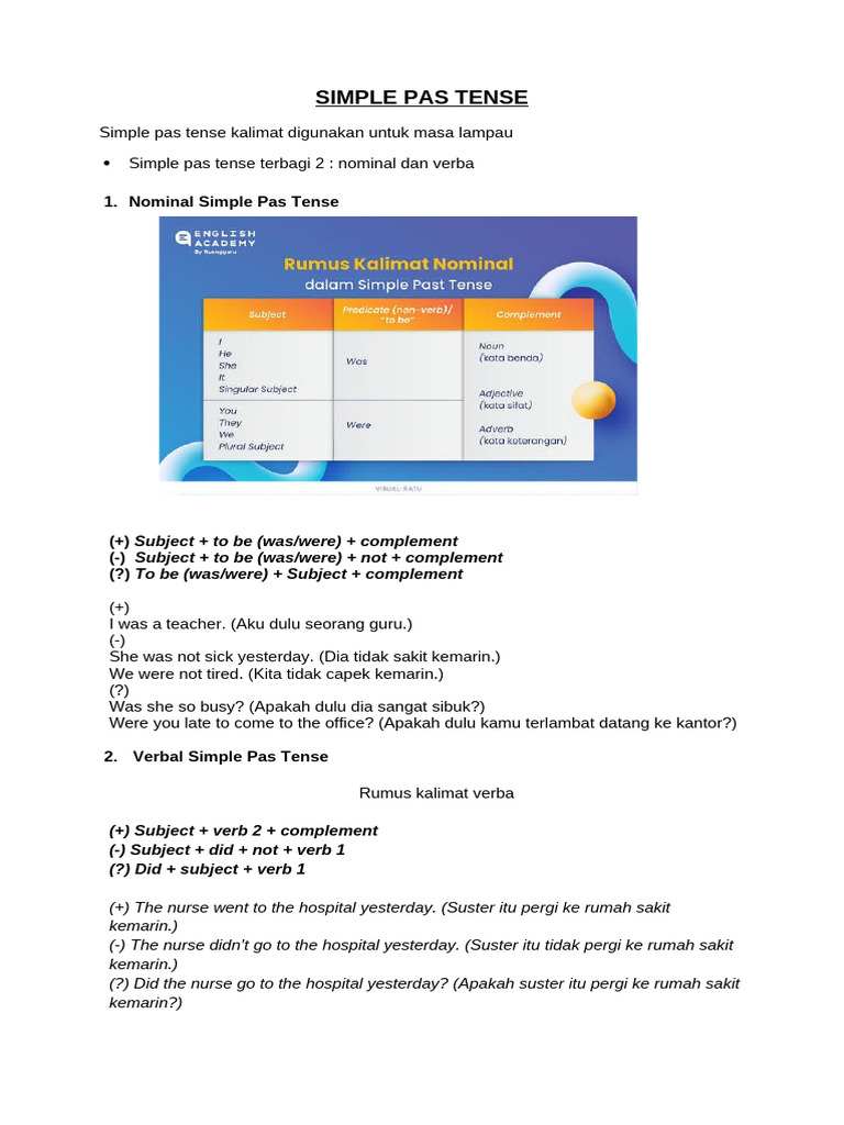 Simple pas tense terbagi 2 : nominal dan verba