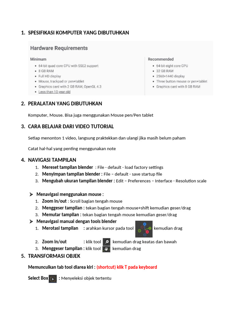Menavigasi manual dengan tools blender
