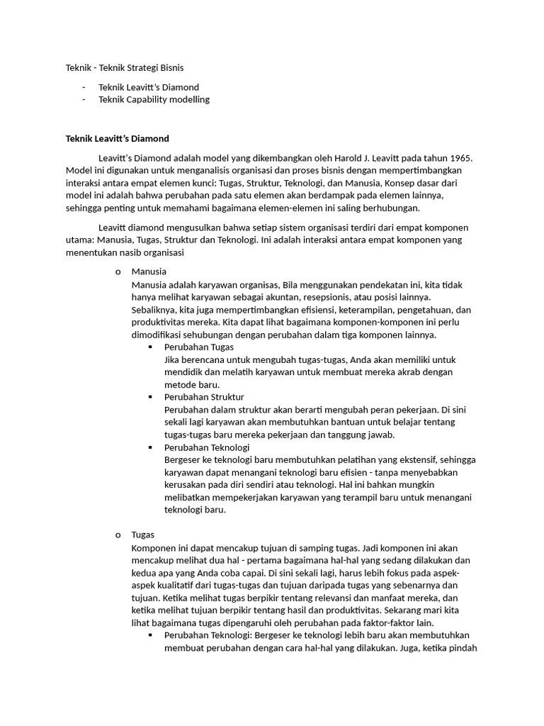 Teknik Leavitt’s Diamond dan Capability Modelling adalah dua pendekatan yang digunakan dalam